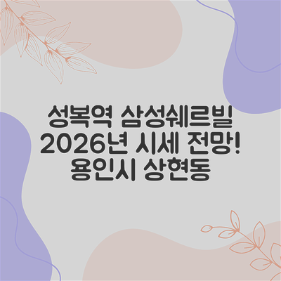 경기도 용인시 수지구 상현동 성복역삼성쉐르빌 아파트 2026년 1월 시세