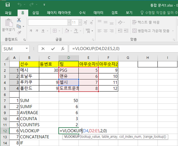 엑셀(Excel)에서 자주 쓰는 함수 정리 2편 (COUNTIFS, VLOOKUP, CONCATENATE, IF)