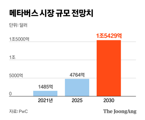 그러면 이제 드는 의문점이 생깁니다. 기존에 있다면서 왜 갑자기 열풍이 불었는가? 가장 큰 이유로는 역시 코로나19의 영향으로 좋든 싫든 집에 보내는 시간이 길어짐에 따라 메타버스 공간에서 생활하는 시간이 늘어났고 인터넷에 익숙한 MZ세대들이 이 문화를 주류로 끌어가고 있기 때문입니다. 따라서 이러한 수요를 파악하고 IT회사들이 이에 맞춰 메타버스 관련 사업을 진행한다고 발표하고 있습니다. 대표적으로 위메이드, 펄어비스가 이 주류에 편승하고 이득을 보고있죠. 또한 정부도 메타버스를 산업 혁신과 경제성장 동력으로 주목하고 5대 핵심과제 중 하나로 메타버스를 선정했습니다.