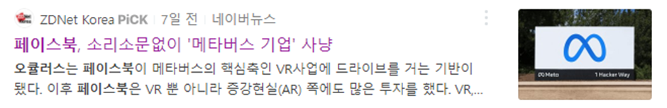 두번째로 일상기록은 일상생활에서 일어나는 모든 순간을 텍스트, 영상, 사운드 등으로 캡처하고 그 내용을 서버에 저장하는 것을 의미합니다. 최근 사진으로 말고 짧은 시간에 모든 것을 영상으로 보여주는 유튜브 쇼츠(shorts)와 틱톡, 긴 시간이지만 내가 궁금한 인플루언서, 친구 혹은 일반인의 일상을 볼 수 있는 Vlog 등이 이러한 일상기록에 해당됩니다. 이러한 일상기록으로 유명한 어플인 페이스북도 얼마전 메타로 회사명을 바꾸었으며, 2014년 VR 제작 업체인 오큘러스를 인수하기 시작하면서 최근까지도 메타버스 관련 회사들을 인수하고 있습니다.