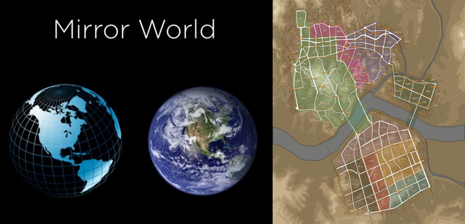 거울세계는 실제 세계의 모습, 정보, 구조 등을 가져가서 데이터화하여 구현시킨 것입니다. 현실 세계에 효율성과 확장성을 더해져서 다양한 영역에 영향을 끼치고 있습니다. 대표적으로 구글 어스와 네이버 맵인데 이러한 인터넷 지도 서비스들은 주기적으로 지도 정보들을 업데이트하면서 현실 세계와 최대한 비슷한 세계를 만듭니다. 옛날 게임이지만 레이시티라는 레이싱 게임을 보면 2005년 서울을 배경으로 하여 당시 서울의 모습을 완벽하게 게임으로 가져와 당시 실제 장소에 있는 간판은 물론 현수막 하나까지 모두 상세하게 구현한 점에서 거울세계와 매우 흡사한 게임이라고 볼 수 있다.