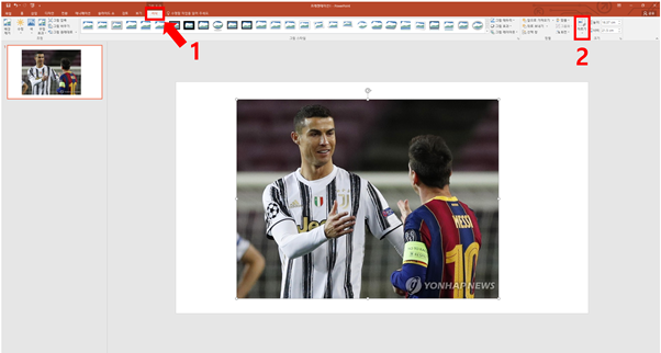 복사가 완료되면 그림을 클릭해서 서식을 눌러준 후 자르기를 클릭합니다