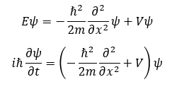 슈뢰딩거 파동 방정식의 형태는 크게 시간 의존 방정식시간 무관 방정식으로 되어있습니다. 시간 의존 방정식은 시간 변수 ’t’가 포함되어 있어 시간을 고려해야 하는 방정식이고, 시간 무관 방정식은 몇 가지 가정들을 통해 시간 변수를 고려하지 않은 방정식입니다. 주로 양자역학에서는 시간 독립적인 경우들이 많아 시간 무관 방정식을 다룹니다.