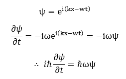 드 브로이 관계식(p=kh/2π)에 의해 위 식은 다음과 같이 쓸 수 있습니다.