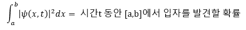 특정 구간[a, b]에서 입자를 발견할 확률은 파동 함수 크기의 제곱을 특정 구간[a, b]에서 적분한 값이 됩니다.