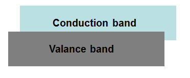 다른 하나는 가전자대가 충만하고 전도대가 부분적으로 채워진 형태입니다. 이 형태는 밴드갭이 아주 작고 전도대가 부분적으로 채워져 있어 전도에 이용될 수 있는 충분한 전자들이 있습니다.