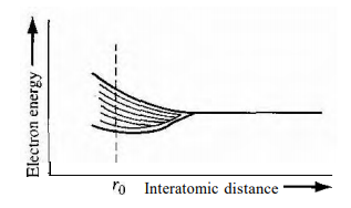 허용밴드(allowed band)에서의 에너지 분리 (r0: 원자간 평형간격)