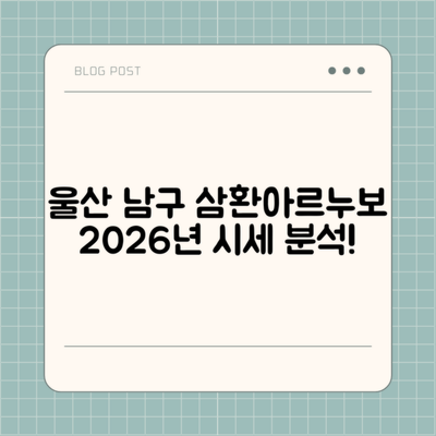 울산시 남구 달동 삼환아르누보(주상복합) 아파트 2026년 1월 시세